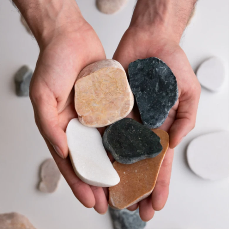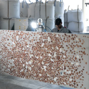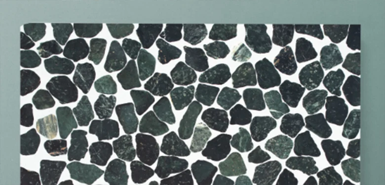 Hoogwaardige UHP (Ultra High Performance) mineraalbeton versterkt met kiezels en rivierstenen.